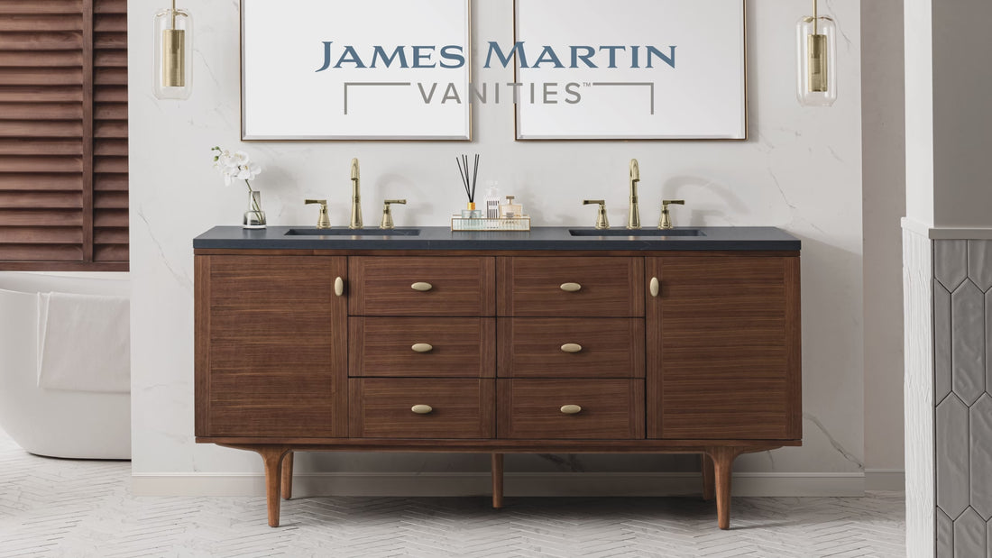 Born from Mid-Century Modern inspiration, the Amberly collection showcases a stunning walnut wood finish. Luxuriously set on subtly curved legs and accented by oval champagne brass pulls, this collection is a harmonious blend of details which delight the eye from every angle.