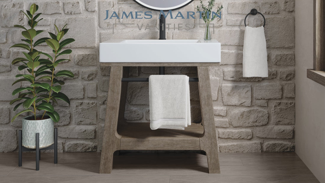 A blend of rustic and modern design, the Auburn vanity has a modern shape which boasts rugged yet elegant details. The wire brushed finish showcases natural texture and wood grains with subtle distressing. This rustically chic vanity will complement many designs aesthetics.