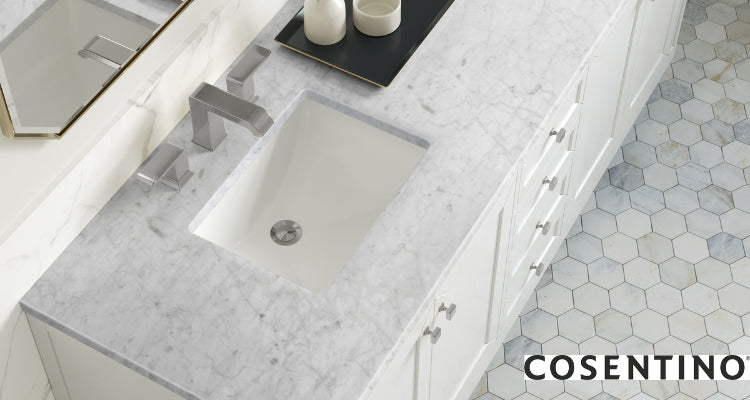 James Martin Vanities' countertops are thoughtfully selected to provide the highest quality and sophistication to elevate your bathroom. Each countertop includes an eased edge with the selected number of white porcelain rectangular undermount sinks. Select vanities are available with FreePower wireless charging tops.