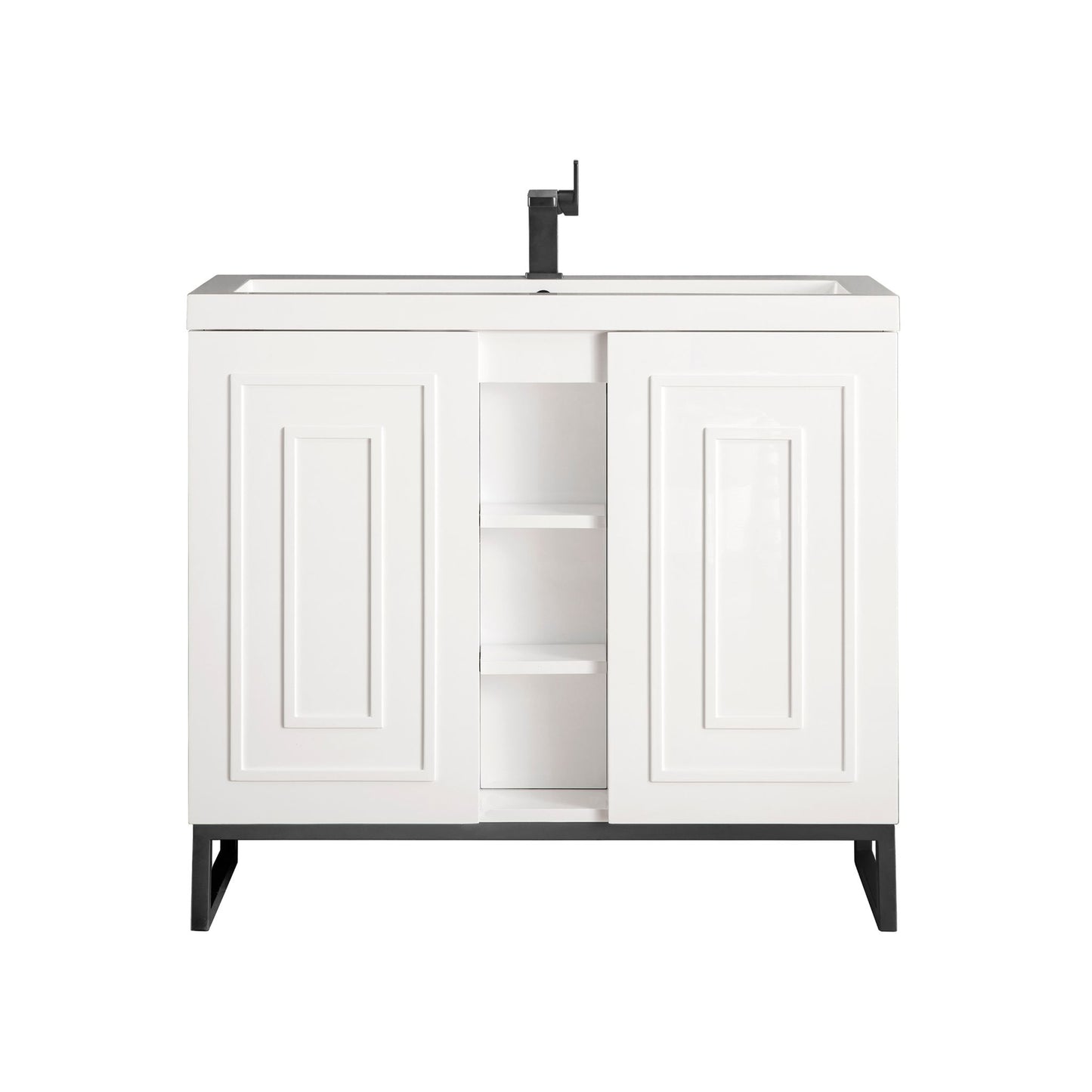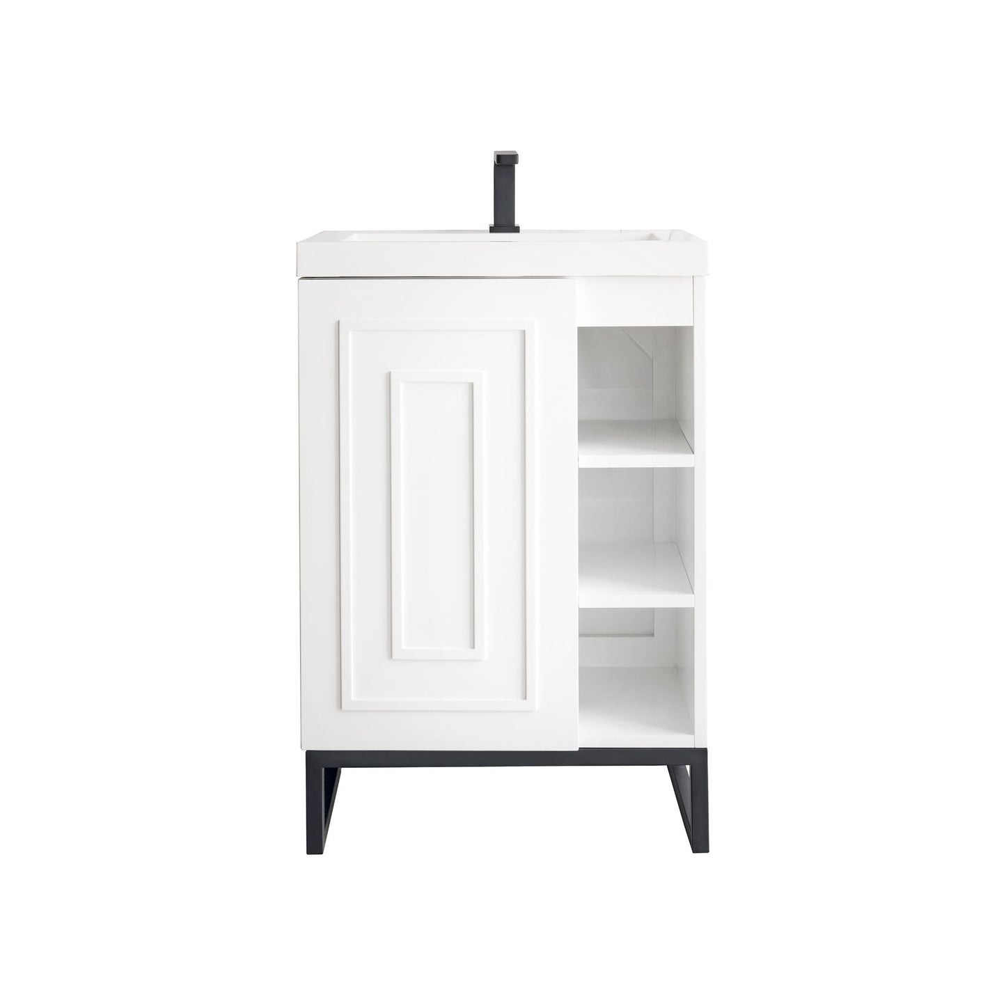 The Alicante collection by James Martin Vanities offers big style in small format. With raised panel doors and exposed external cubbies, it’s the perfect modern bathroom vanity for smaller spaces. This collection showcases versatility with it's optional base and the ability to install freestanding or wall-mounted for a more contemporary look. Choose from two sizes and four beautiful finishes, as well as three optional metal bases.Â
