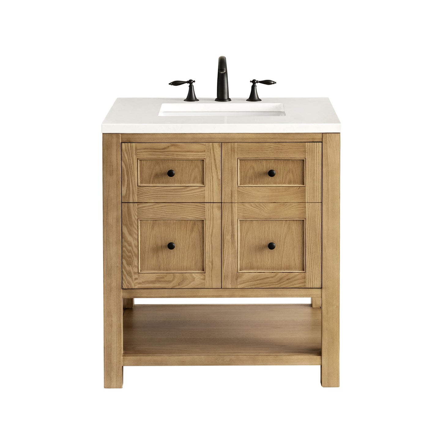 A fresh take on traditional Mission furniture, the Breckenridge Collection by James Martin Vanities easily transitions to Modern Farmhouse style with an air of understated sophistication. This console-style vanity has an integrated open shelf for additional storage, neatly inset door and drawer fronts to maintain the symmetry of the Shaker aesthetic, and coordinating knobs that complement each of the available finishes. With clean lines and a chic design, this collection is destined to become a classic.