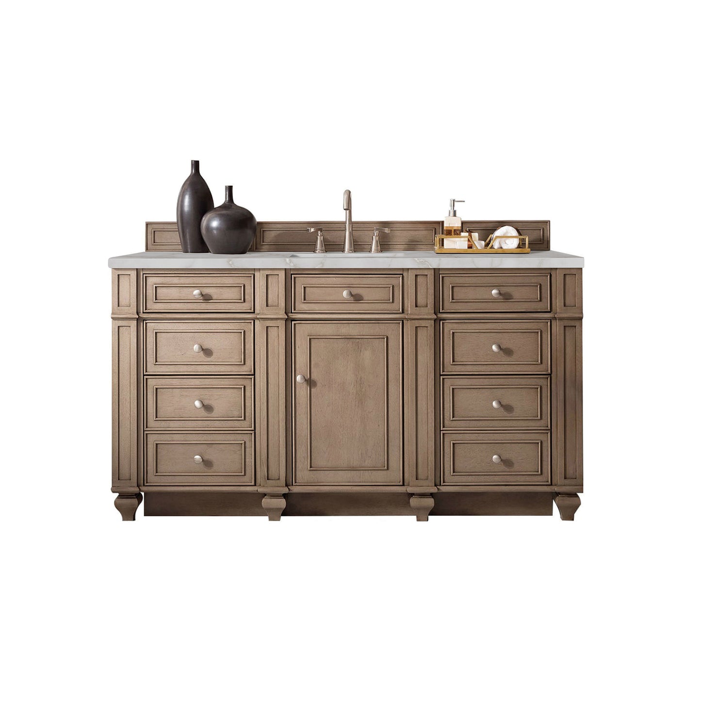 The Bristol Vanity Collection combines classic traditional styling with a transitional twist. Raised and recessed picture frame molding and tulip-shaped legs create an elegant look, while ample storage and a toe