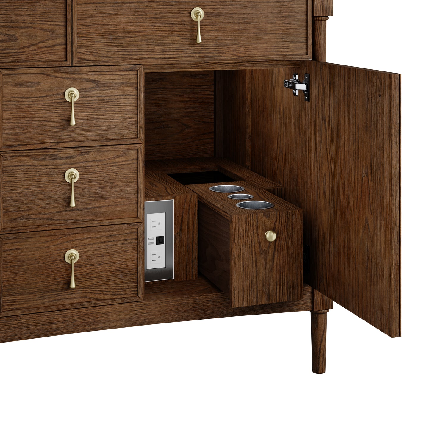 - Custom, curated hardware for drawers and doors
