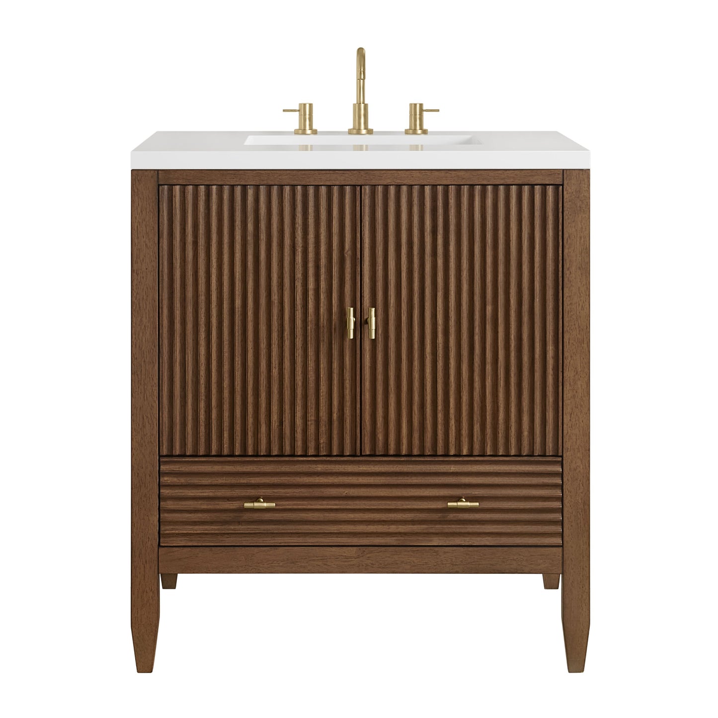 The fluted panels and minimalistic silhouette of the Myrrin Collection bring a harmonious blend of classical elegance and contemporary design to any space. The geometric play of the contrasting panels adds visual drama and allows the light to accentuate this dramatic design. Available in three finishes and adorned with T-knobs in Champagne Brass, the Myrrin is the