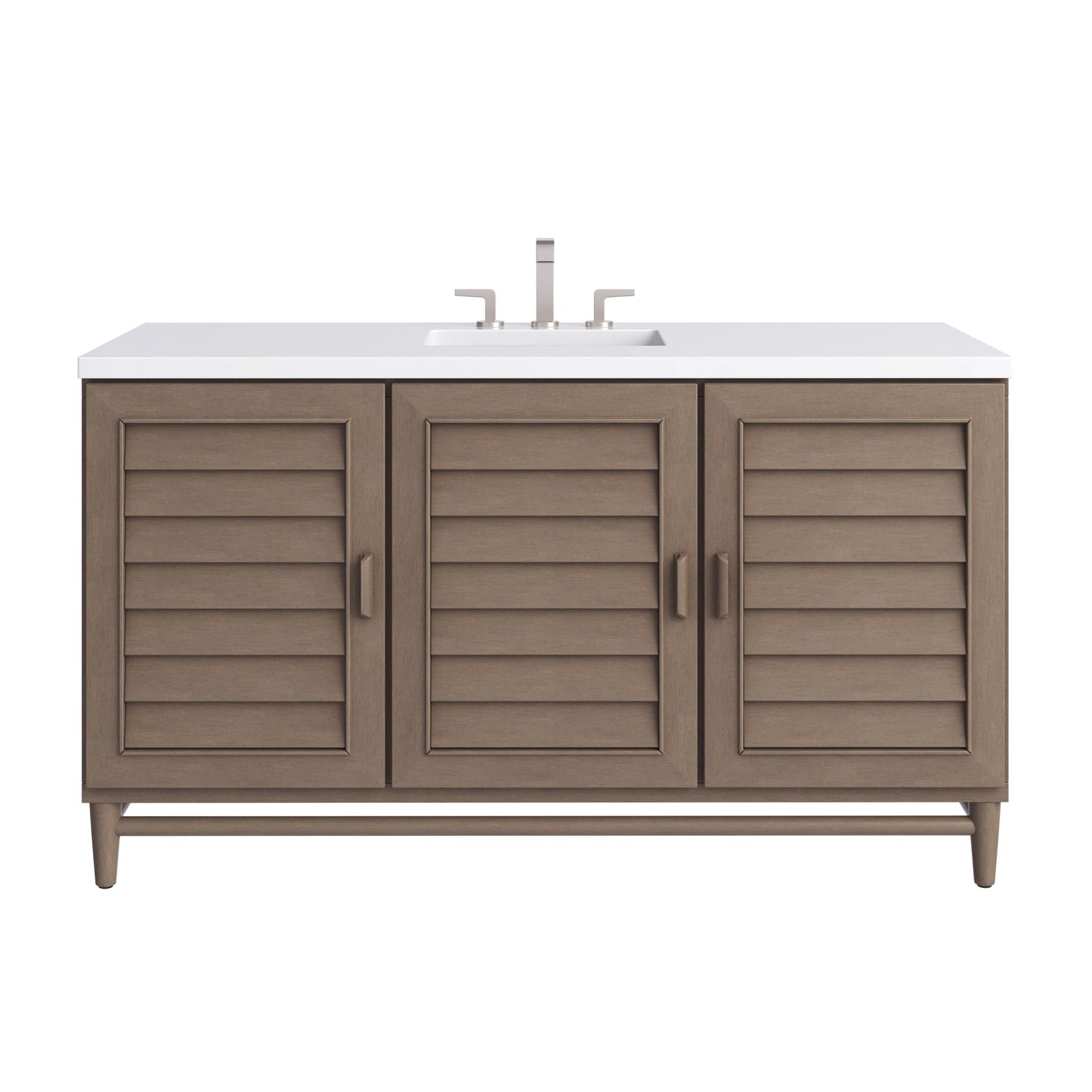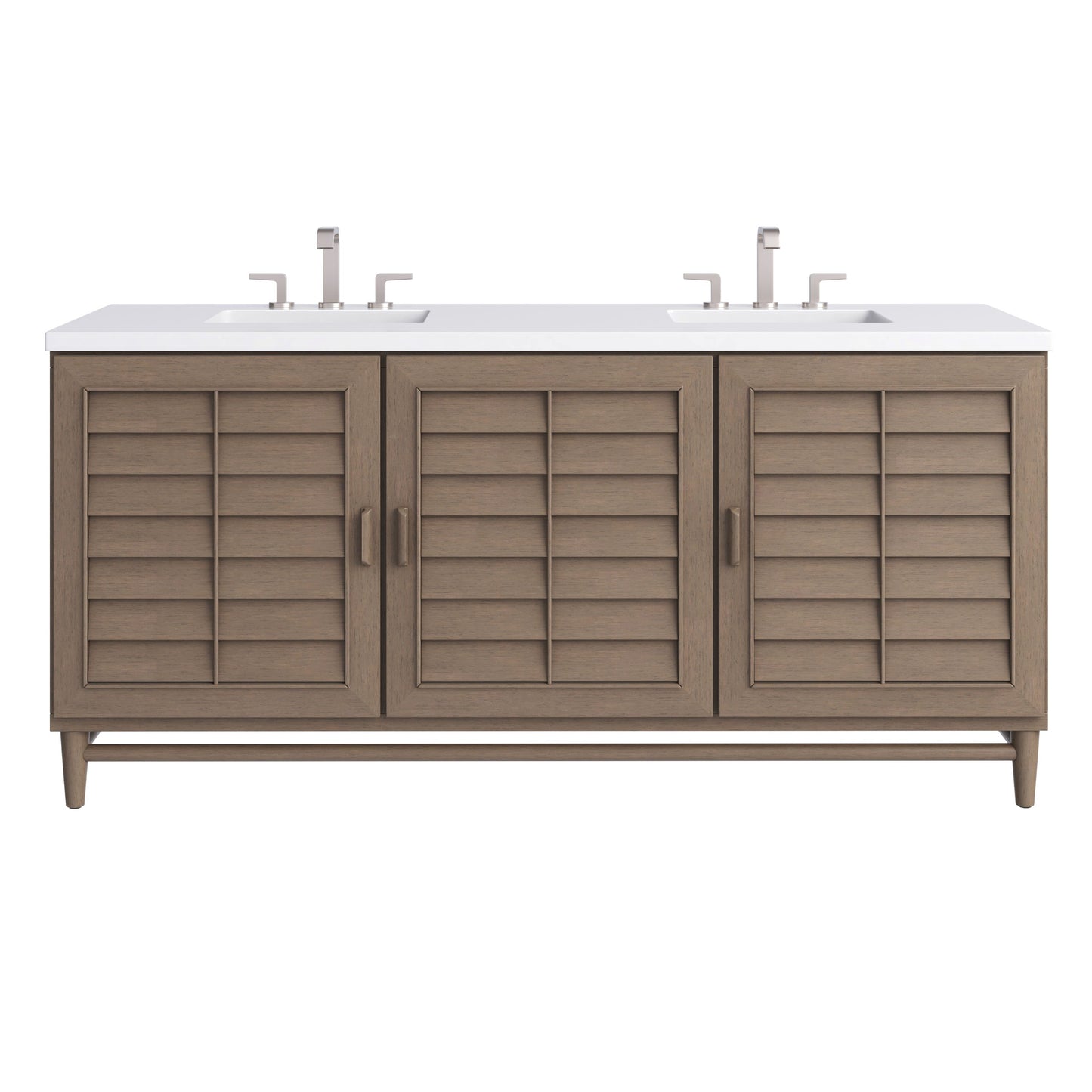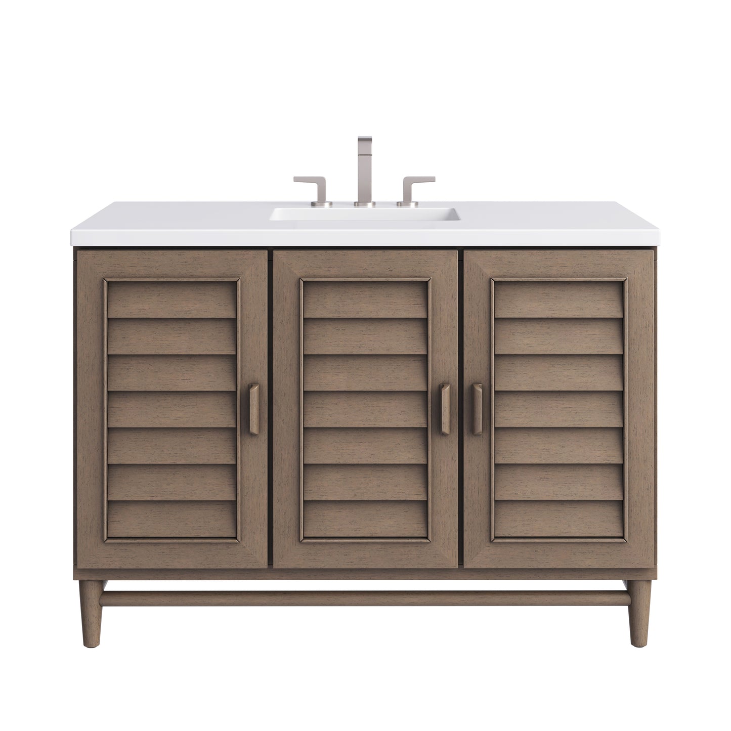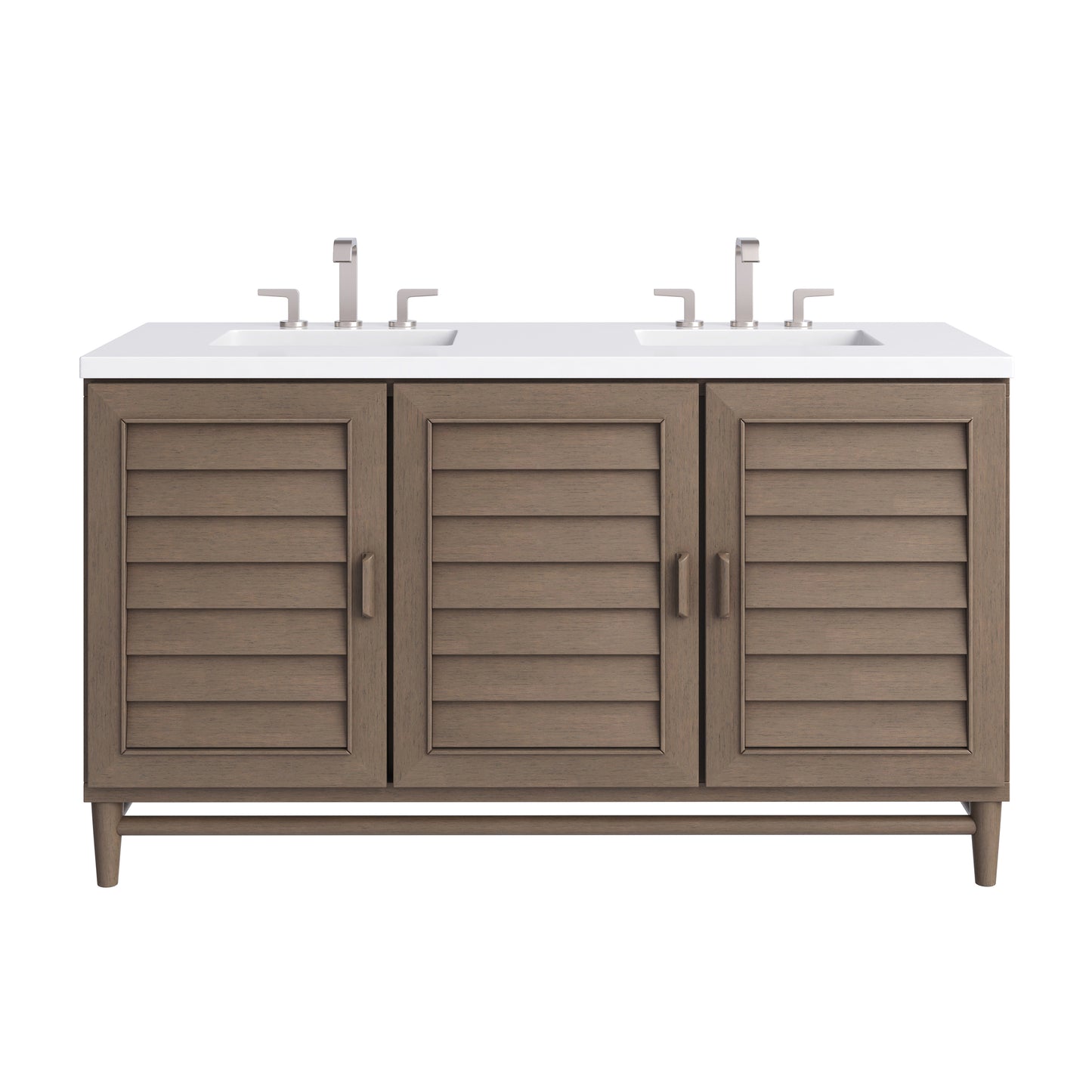 Influenced by the American Mid-Century design aesthetic, the Portland Collection takes center stage in rich Whitewashed Walnut. With understated wood handles and shutter-style louvered doors, this collection has an air of casual simplicity with a relaxed coastal vibe.