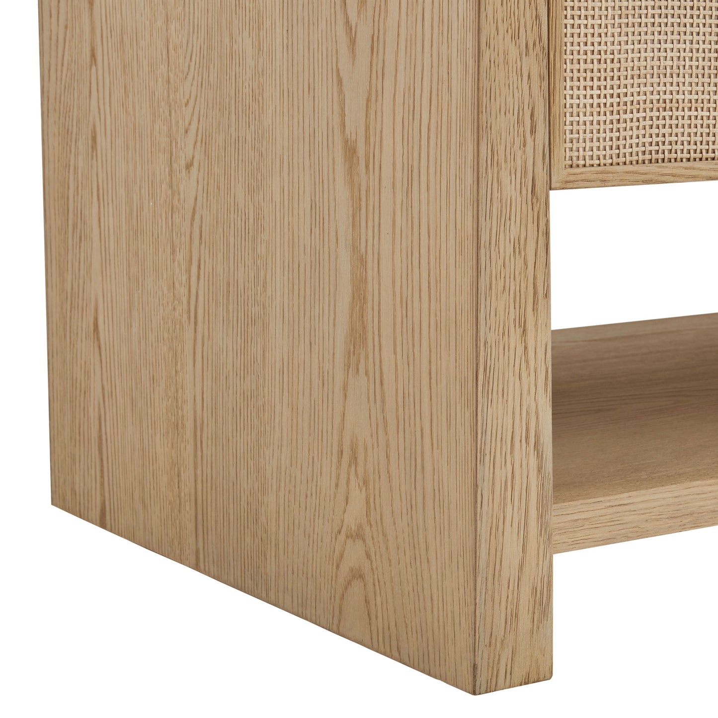 Rooted in the elegance of Scandinavian simplicity and the craftsmanship of Arts and Crafts design, the Solene Collection by James Martin Vanities showcases a masterful blend of architectural finesse. Built from solid White Oak with White Oak veneers and natural Cane, the Solene weaves together an elegant blend of natural materials. The subtle reverse-tapered legs add visual intrigue, and the natural Cane door and drawer panels utilize modern cutout cabinet pulls. Offered in an elegant Seaside Oak finish and three sizes, the Solene offers generous storage with both exterior and interior drawers. Bring your bathroom to life with the natural elements and contemporary aesthetic of Solene.